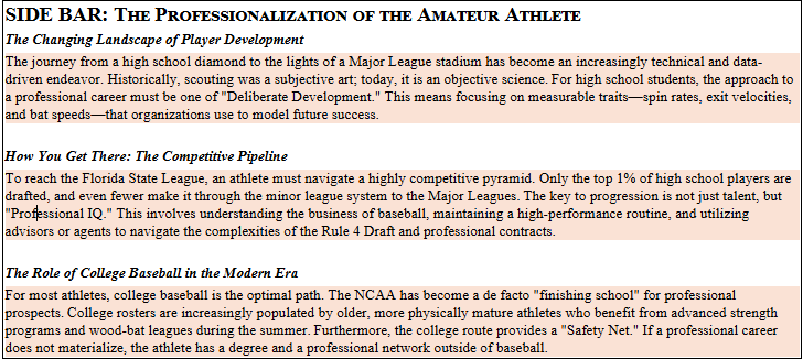 When advising high school players, the primary consideration is "Signability." Organizations use a player's "College Commitment" as leverage during negotiations. If a player is a high-round talent with a strong commitment to a top-tier university, they have the leverage to demand a higher signing bonus.