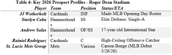 The assignment to the Jupiter Hammerheads (Marlins) or Palm Beach Cardinals (Cardinals) signifies that an organization believes a player is ready for "full-season" ball. This means they possess the physical durability to play nearly every day for five months and the mental fortitude to handle the inevitable failures that come with a 132-game season.